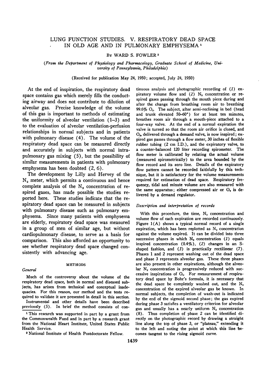 LUNG FUNCTION STUDIES. V. RESPIRATORY DEAD SPACE IN OLD AGE AND IN PULMONARY EMPHYSEMA