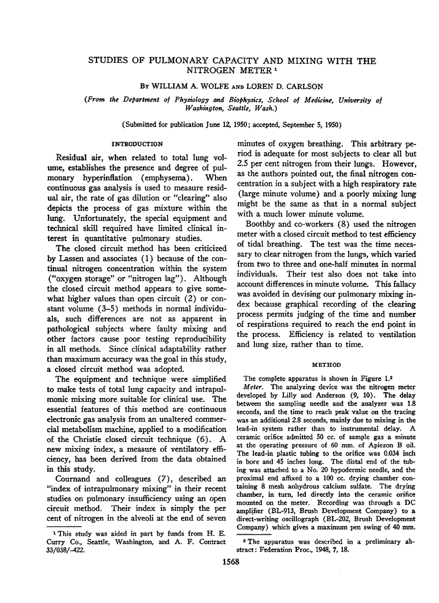 STUDIES OF PULMONARY CAPACITY AND MIXING WITH THE NITROGEN METER