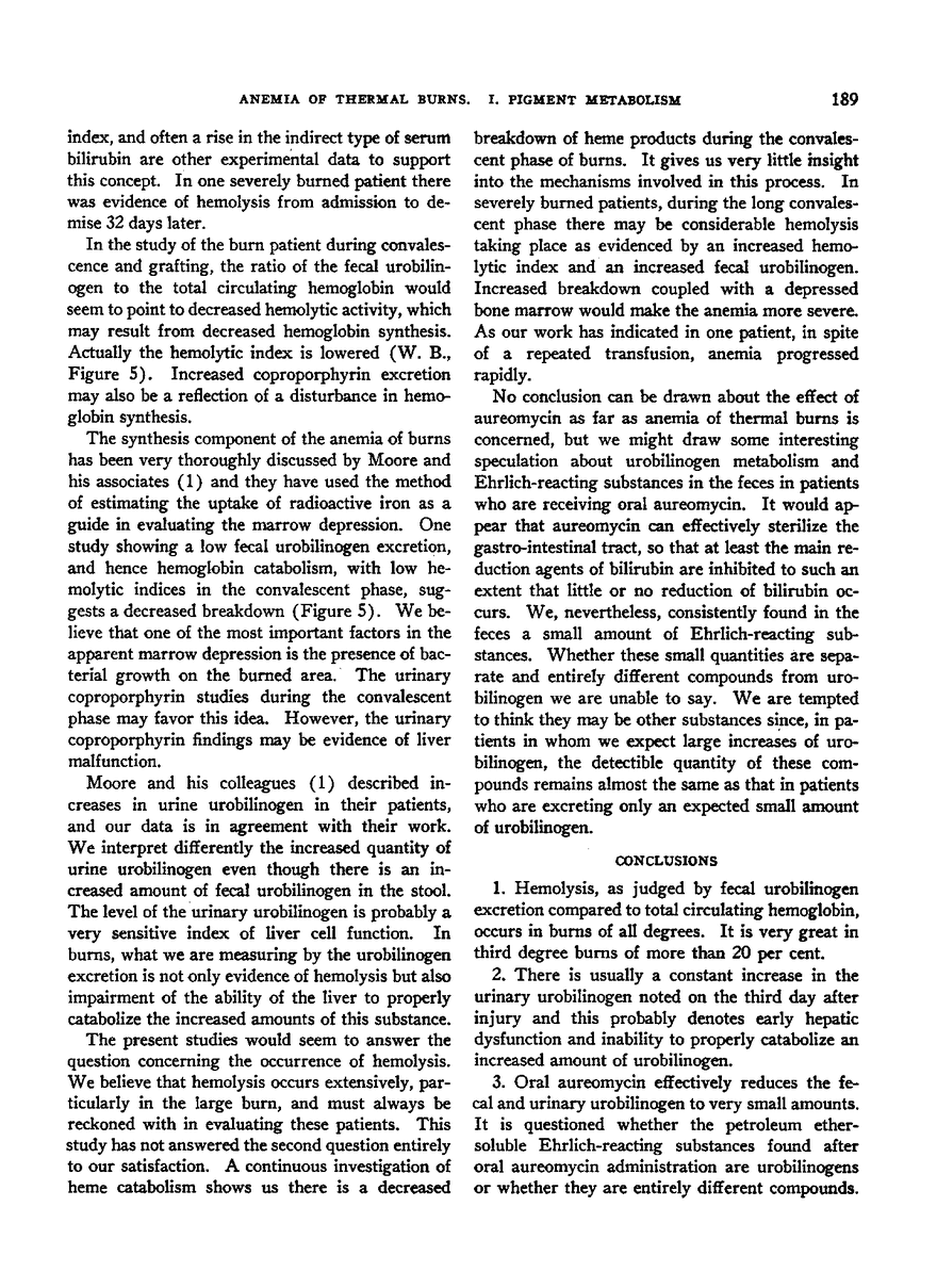 THE ANEMIA OF THERMAL INJURY. I. STUDIES OF PIGMENT EXCRETION