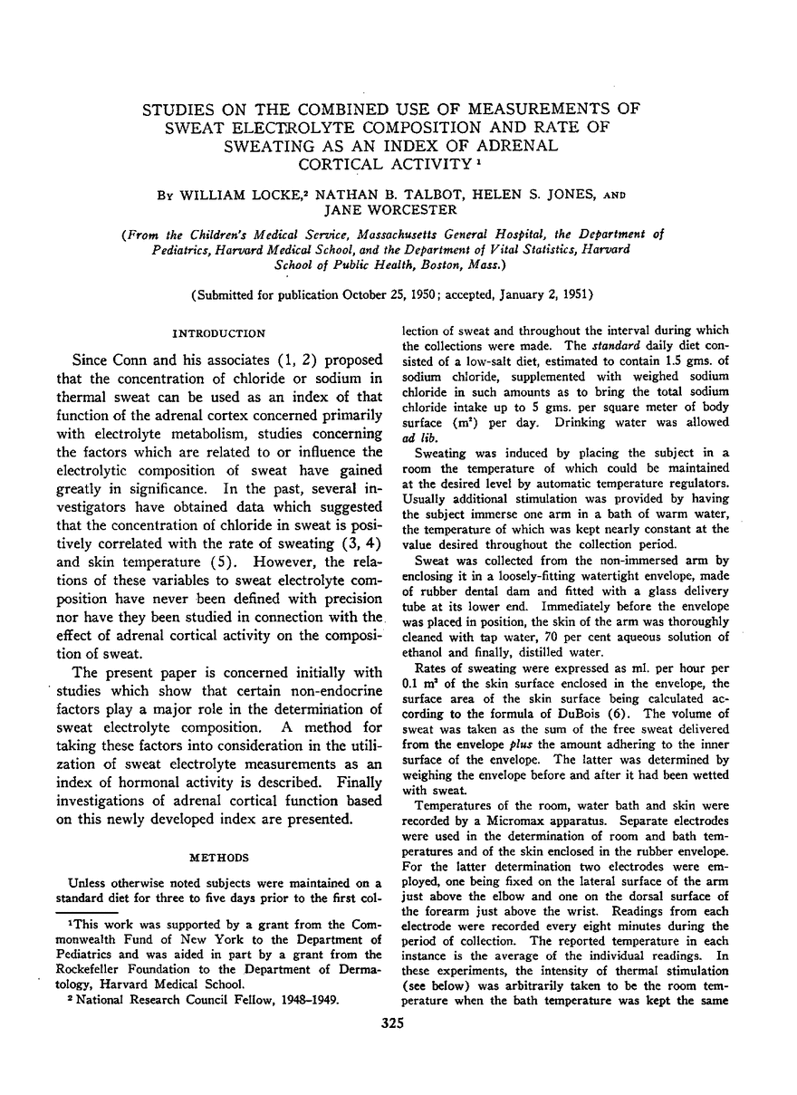STUDIES ON THE COMBINED USE OF MEASUREMENTS OF SWEAT ELECTROLYTE COMPOSITION AND RATE OF SWEATING AS AN INDEX OF ADRENAL CORTICAL ACTIVITY