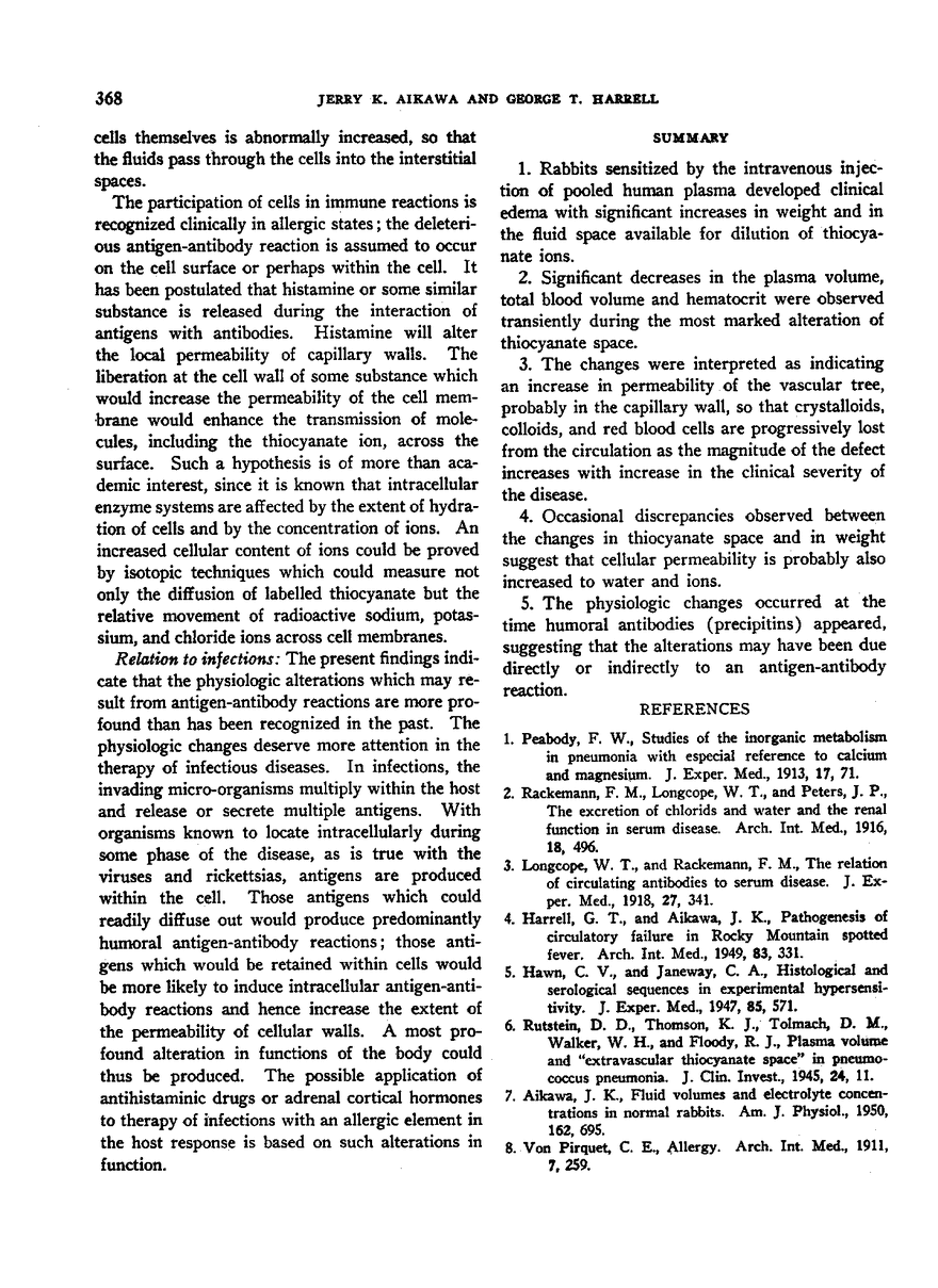 THE IMMUNOPHYSIOLOGY OF SERUM SICKNESS. ALTERATIONS IN THE BLOOD VOLUME AND THIOCYANATE SPACE IN RELATION TO THE DEVELOPMENT OF HUMORAL ANTIBODIES IN THE RABBIT