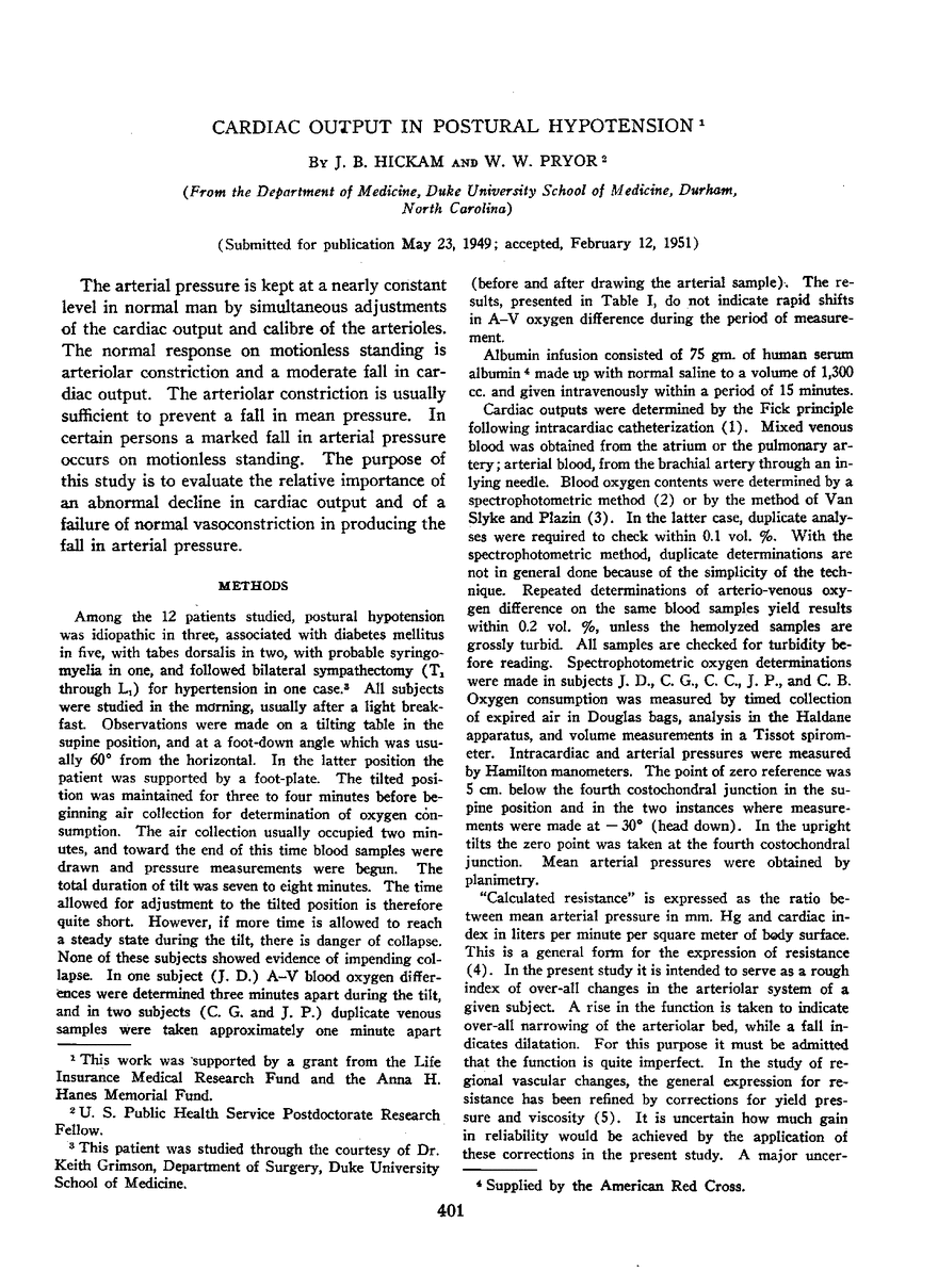 CARDIAC OUTPUT IN POSTURAL HYPOTENSION