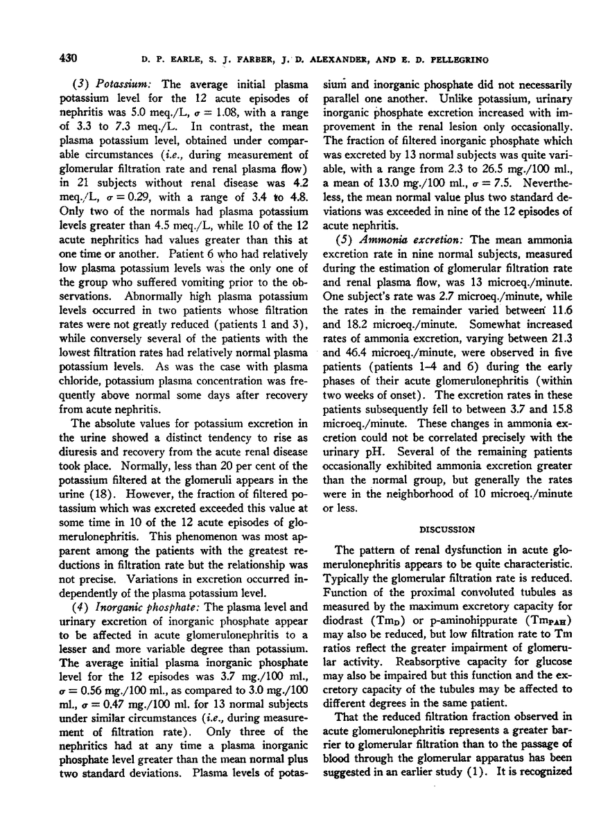 D. P. Earle, S. J. Farber, J. D. Alexander, E. D. Pellegrino