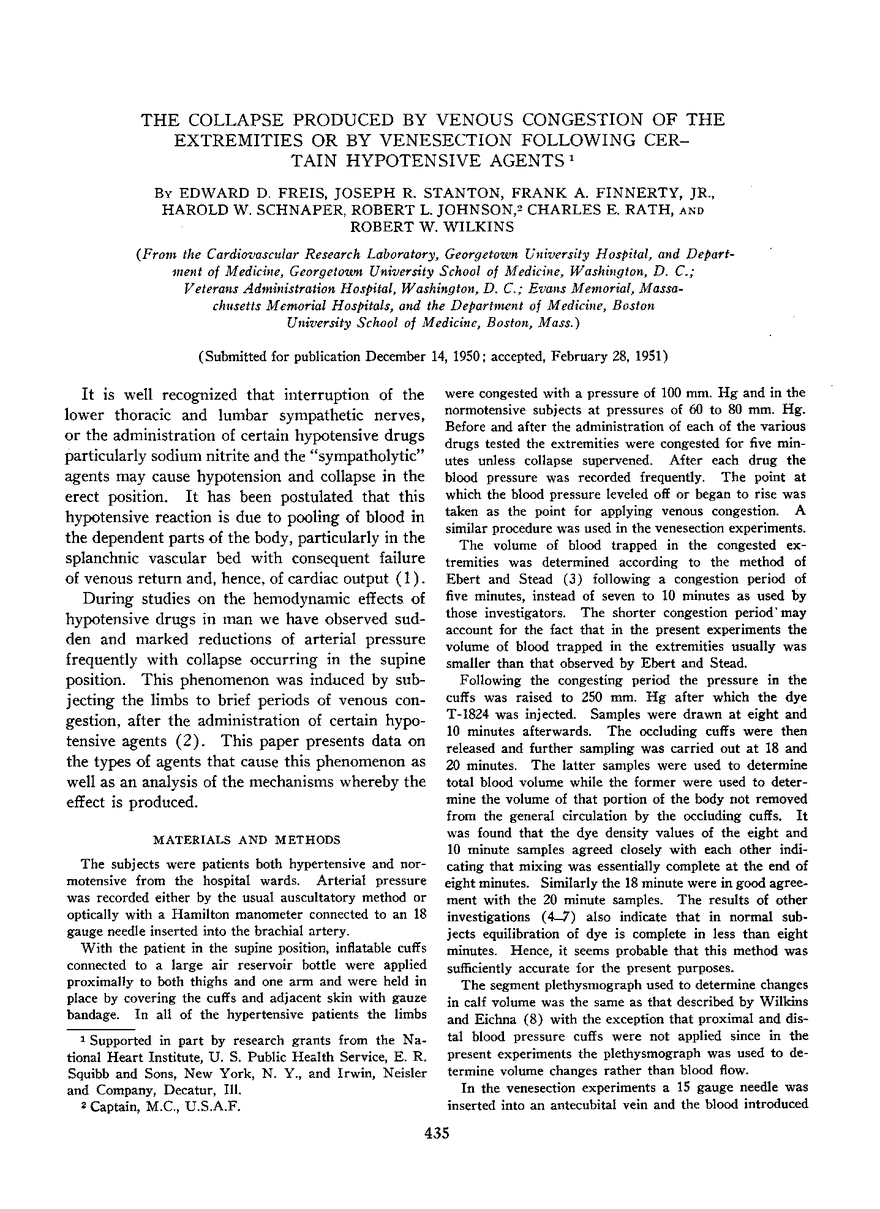 Edward D. Freis, Joseph R. Stanton, Frank A. Finnerty Jr., Harold W. Schnaper, Robert L. Johnson, Charles E. Rath, Robert W. Wilkins