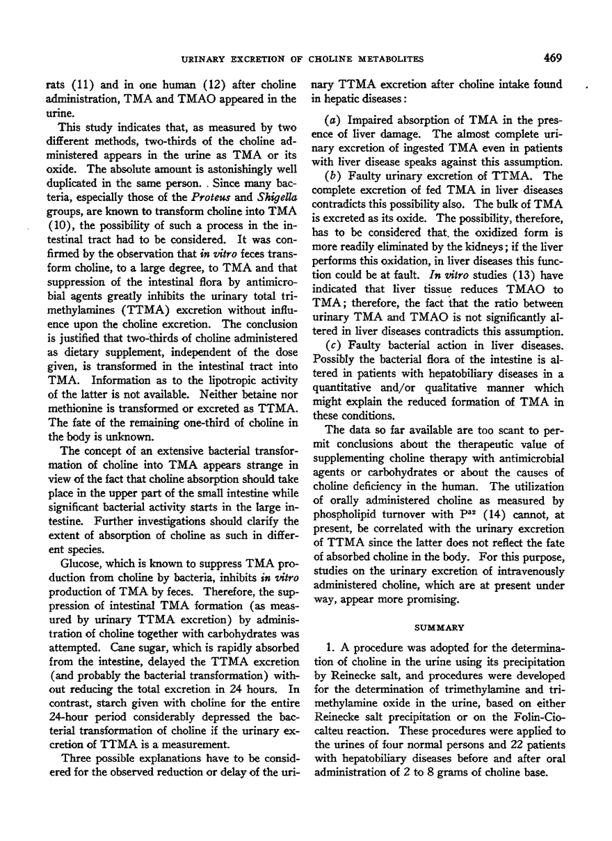 URINARY EXCRETION OF CHOLINE METABOLITES FOLLOWING CHOLINE ADMINISTRATION IN NORMALS AND PATIENTS WITH HEPATOBILIARY DISEASES