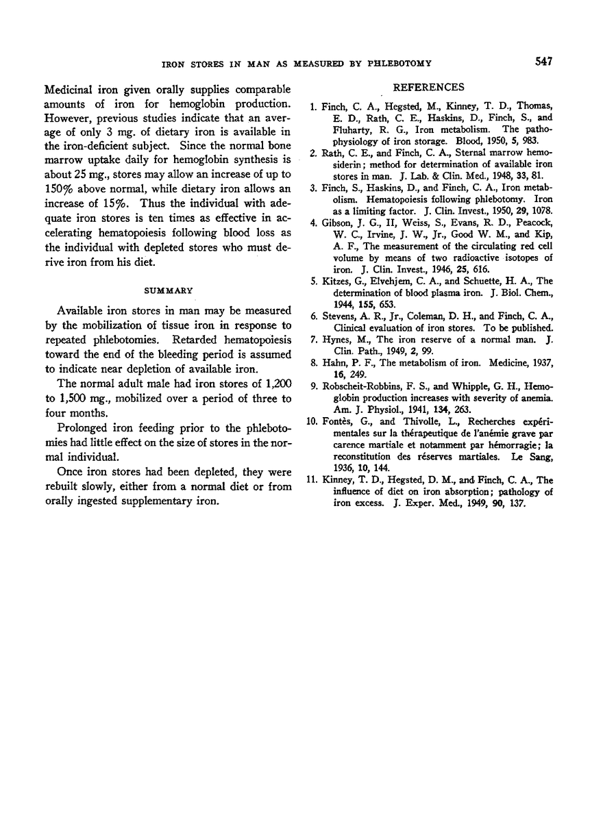IRON METABOLISM. IRON STORES IN MAN AS MEASURED BY PHLEBOTOMY