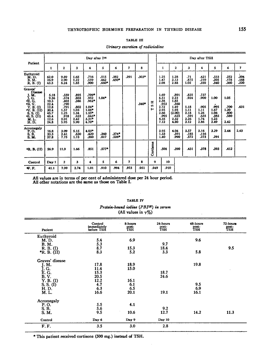 THE EFFECT OF A THYROTROPHIC HORMONE PREPARATION ON THE METABOLISM OF RADIOIODINE IN EUTHYROID, HYPERTHYROID AND ACROMEGALIC INDIVIDUALS