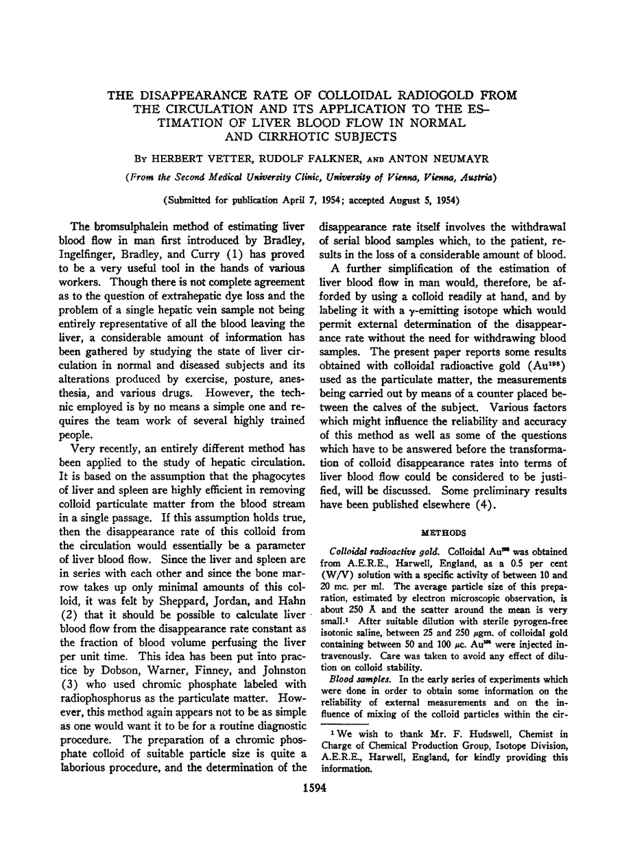 The Disappearance Rate of Colloidal Radiogold from the Circulation and Its Application to the Estimation of Liver Blood Flow in Normal and Cirrhotic Subjects