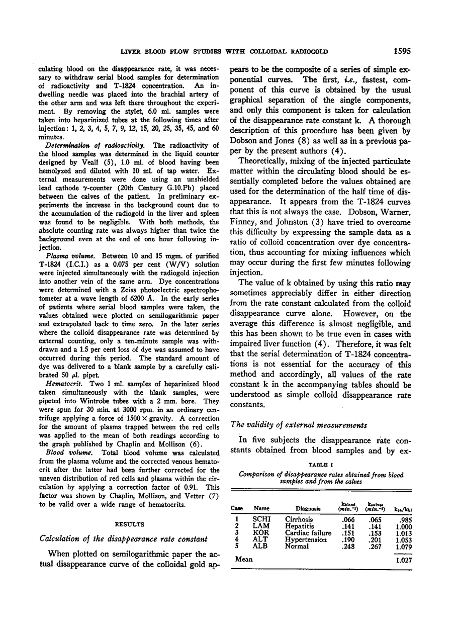The Disappearance Rate of Colloidal Radiogold from the Circulation and Its Application to the Estimation of Liver Blood Flow in Normal and Cirrhotic Subjects