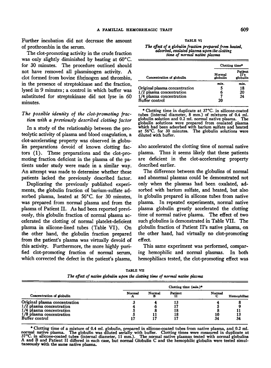 A FAMILIAL HEMORRHAGIC TRAIT ASSOCIATED WITH A DEFICIENCY OF A CLOT-PROMOTING FRACTION OF PLASMA