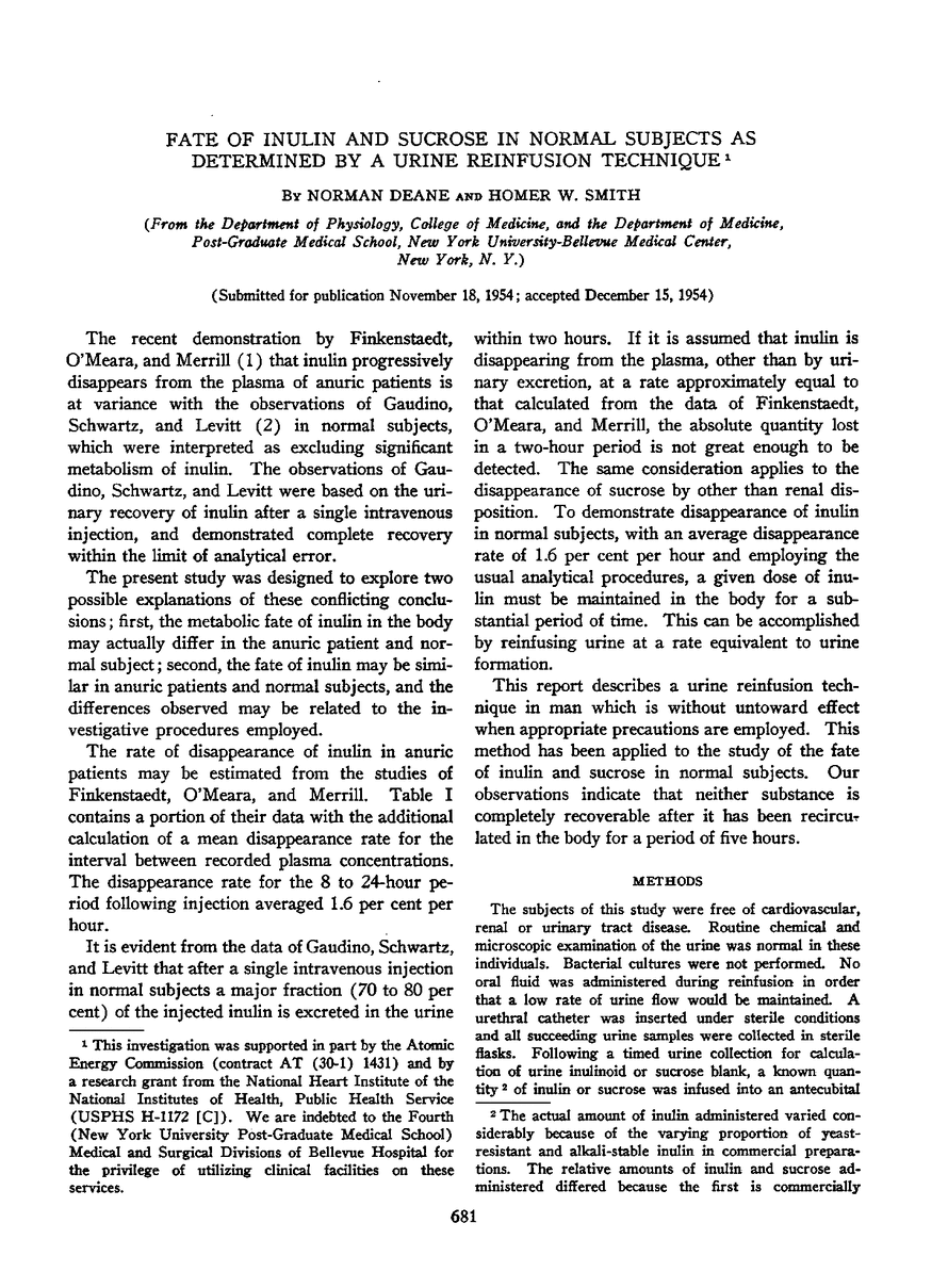 FATE OF INULIN AND SUCROSE IN NORMAL SUBJECTS AS DETERMINED BY A URINE REINFUSION TECHNIQUE