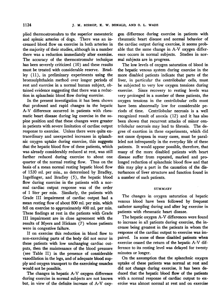 J. M. Bishop, K. W. Donald, O. L. Wade