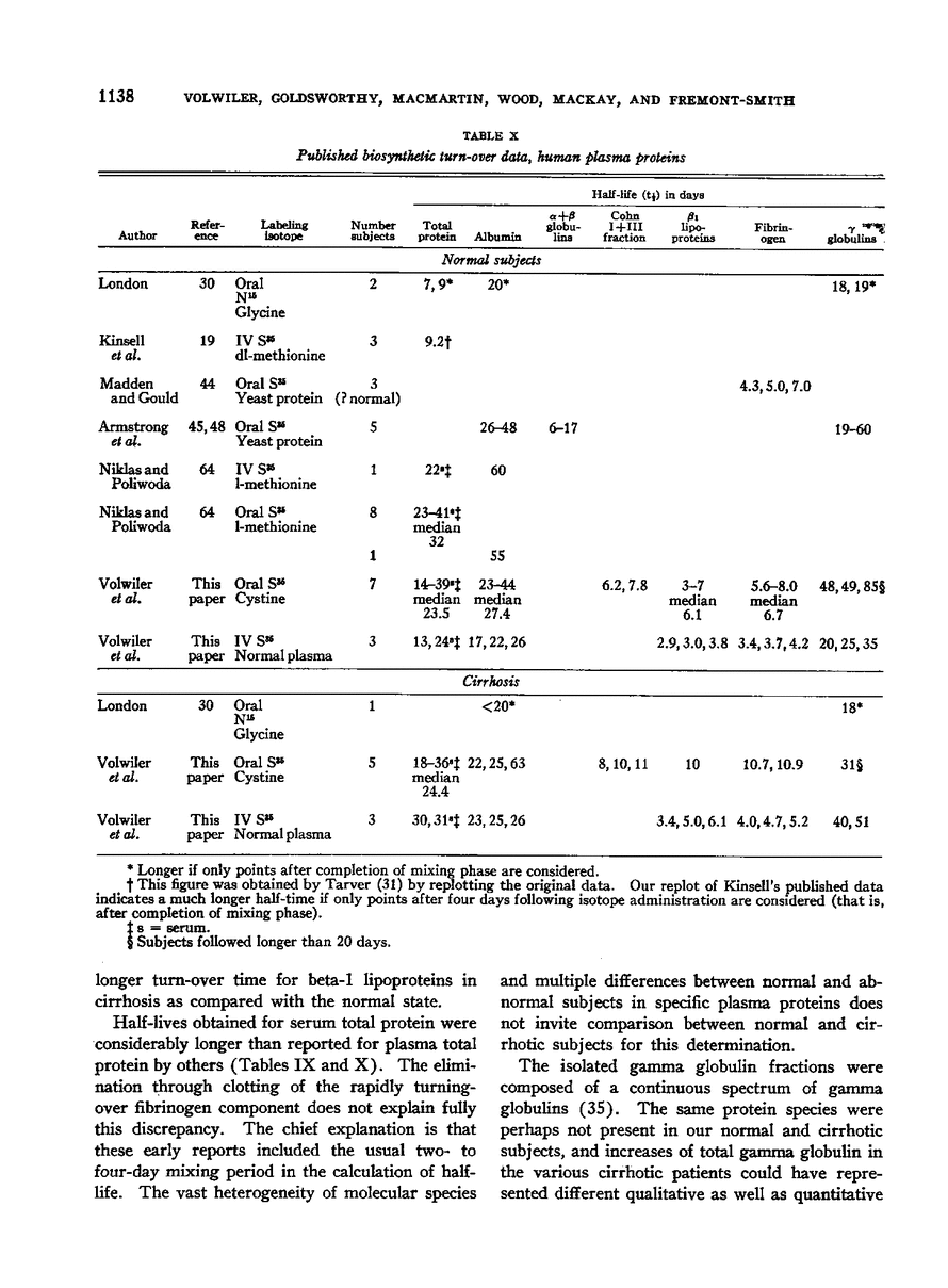 BIOSYNTHETIC DETERMINATION WITH RADIOACTIVE SULFUR OF TURN-OVER RATES OF VARIOUS PLASMA PROTEINS IN NORMAL AND CIRRHOTIC MAN