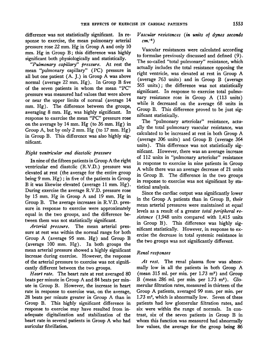 THE EFFECTS OF EXERCISE ON CARDIOVASCULAR AND RENAL FUNCTION IN CARDIAC PATIENTS WITH AND WITHOUT HEART FAILURE