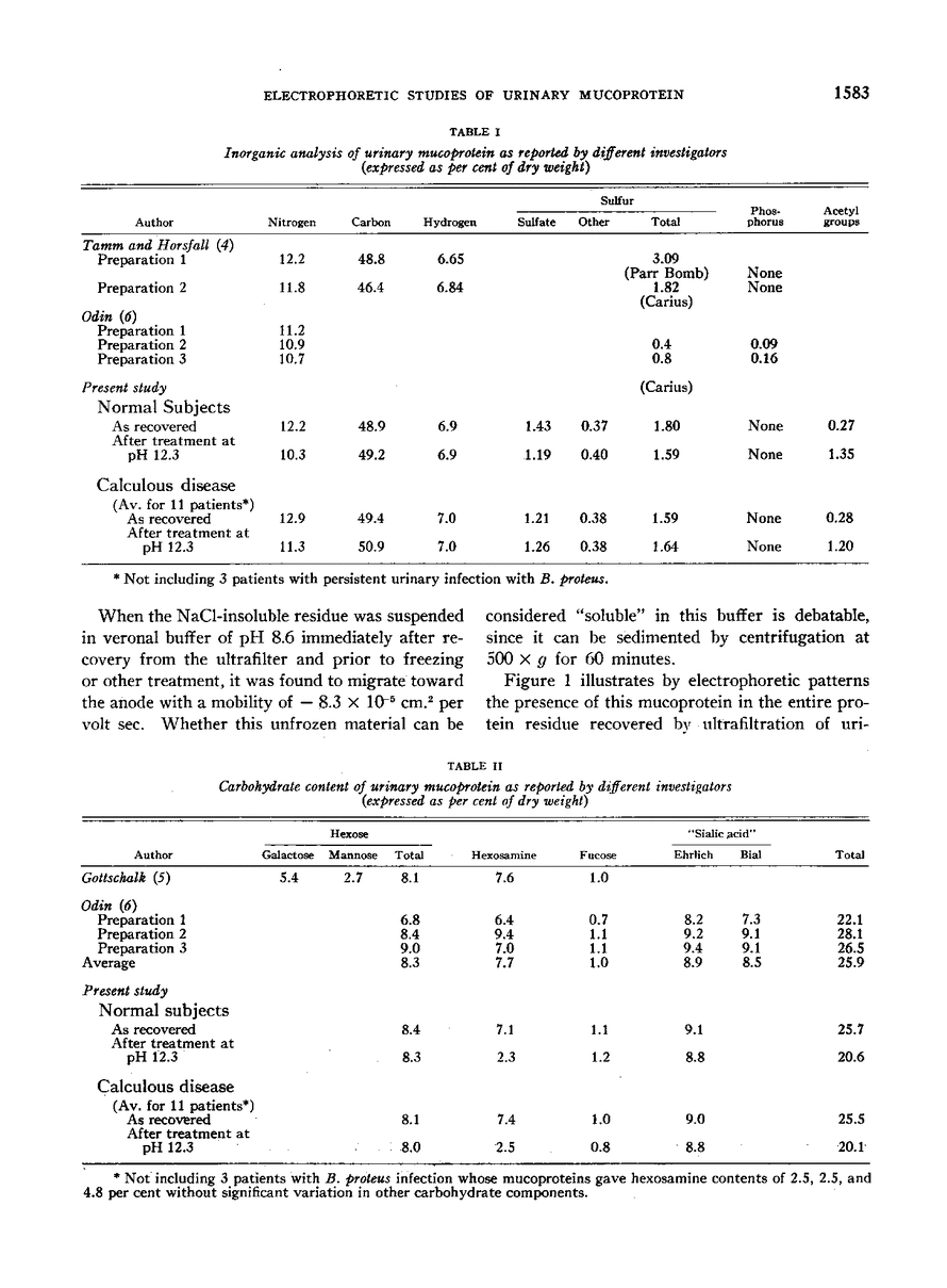 BIOCOLLOIDS OF URINE IN HEALTH AND IN CALCULOUS DISEASE. II. ELECTROPHORETIC AND BIOCHEMICAL STUDIES OF A MUCOPROTEIN INSOLUBLE IN MOLAR SODIUM CHLORIDE