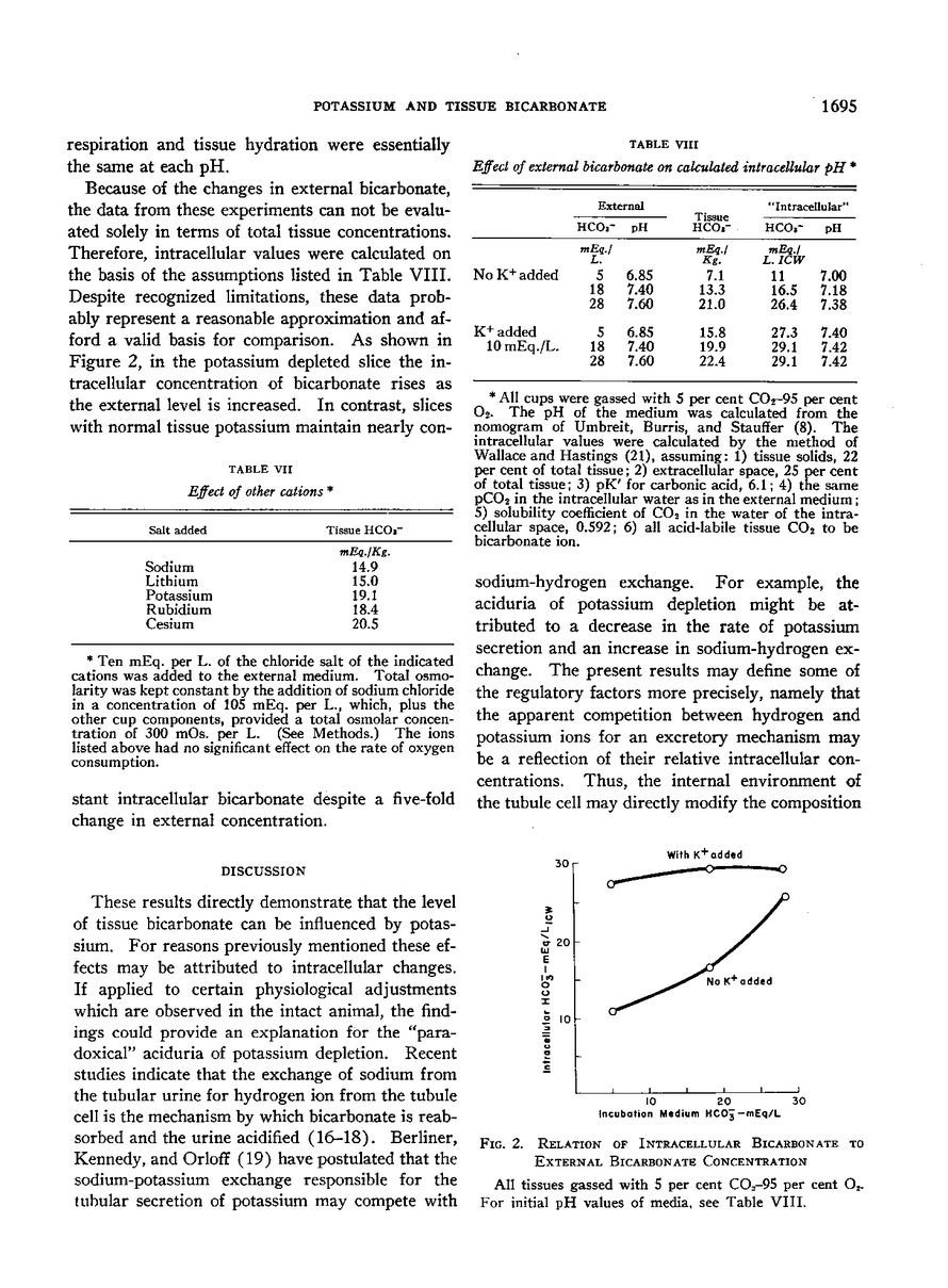 THE EFFECT OF POTASSIUM ON INTRACELLULAR BICARBONATE IN SLICES OF KIDNEY CORTEX
