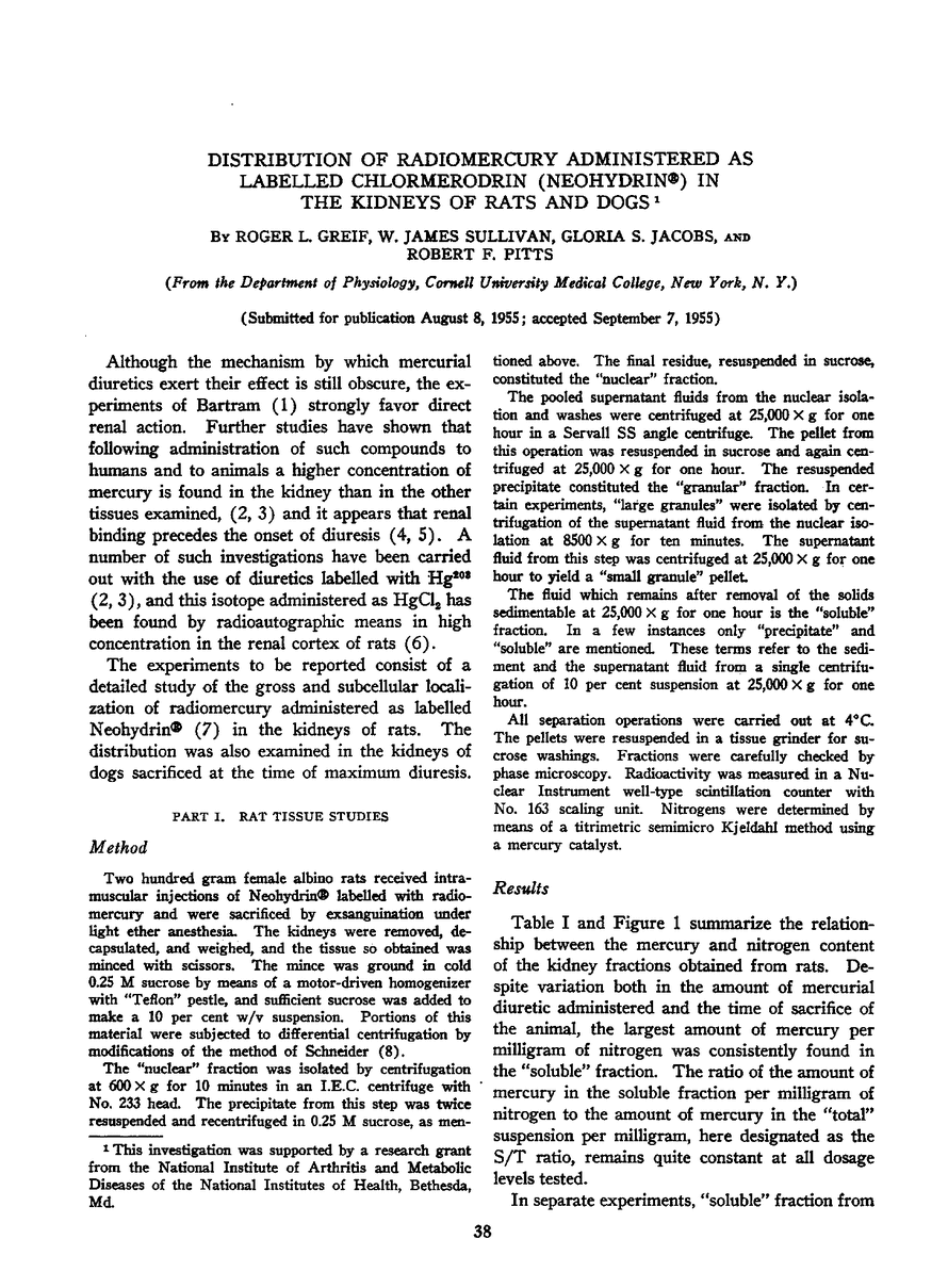 DISTRIBUTION OF RADIOMERCURY ADMINISTERED AS LABELLED CHLORMERODRIN (NEOHYDRIN®) IN THE KIDNEYS OF RATS AND DOGS