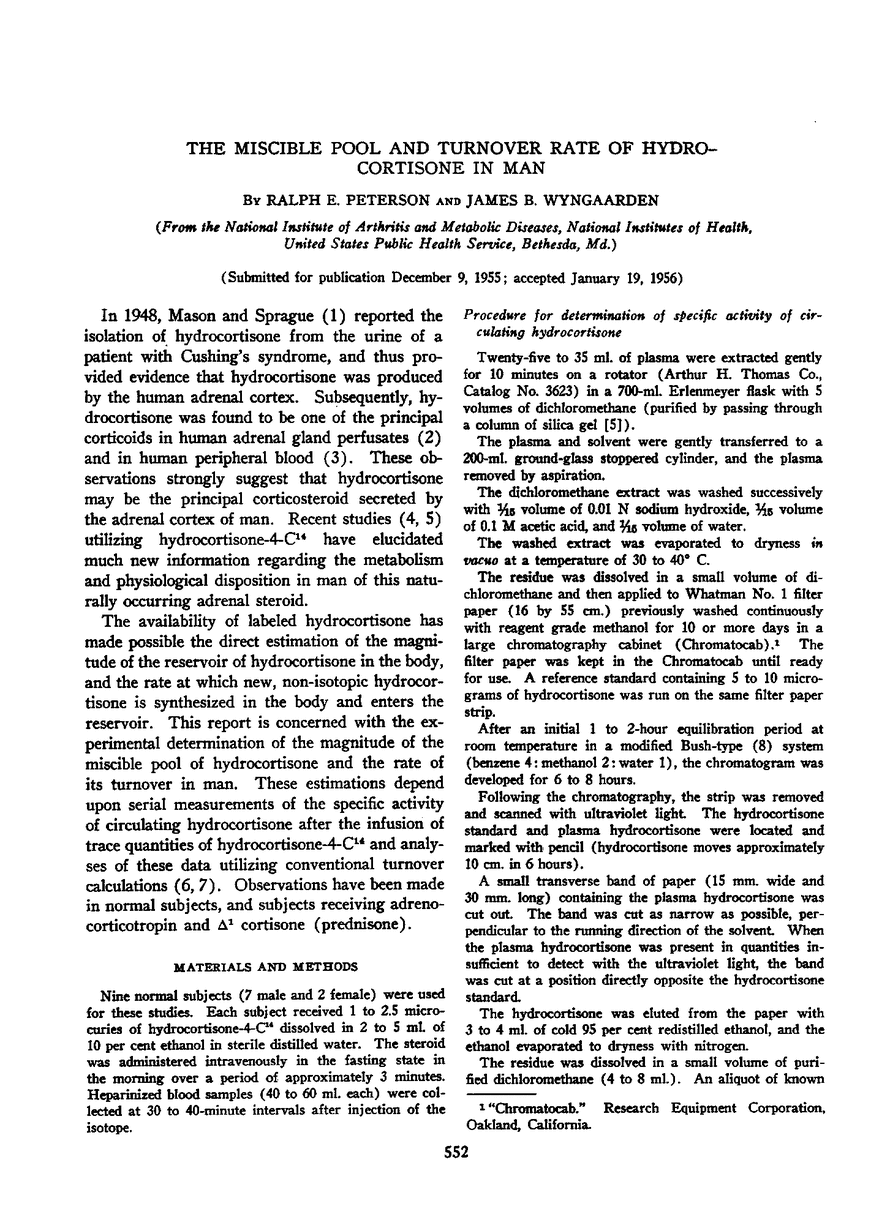 THE MISCIBLE POOL AND TURNOVER RATE OF HYDROCORTISONE IN MAN