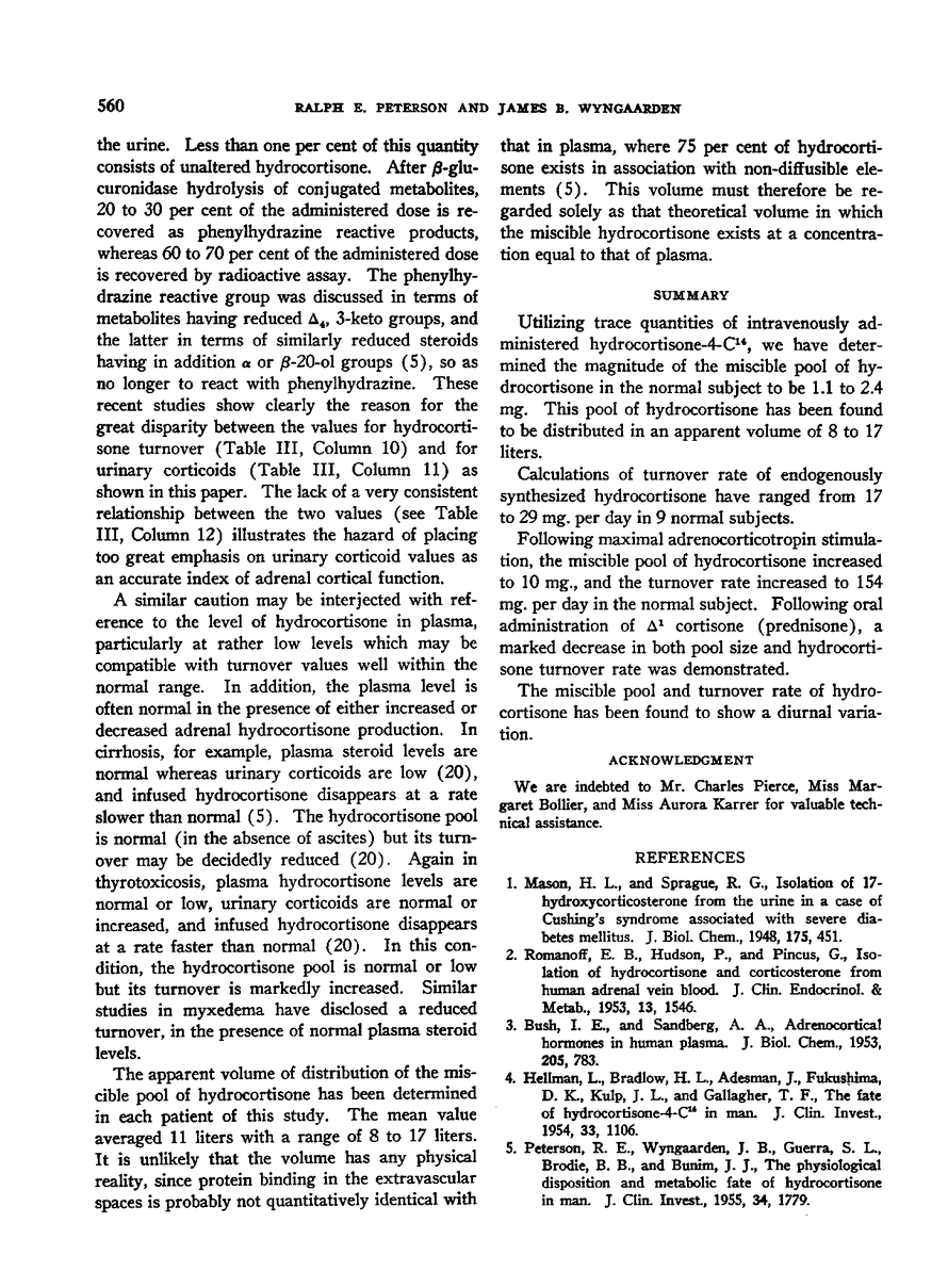 THE MISCIBLE POOL AND TURNOVER RATE OF HYDROCORTISONE IN MAN