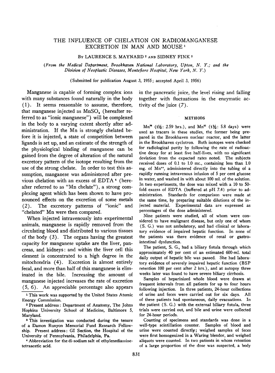THE INFLUENCE OF CHELATION ON RADIOMANGANESE EXCRETION IN MAN AND MOUSE