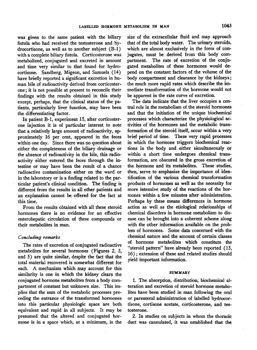 TRACER STUDIES OF THE ABSORPTION AND FATE OF STEROID HORMONES IN MAN