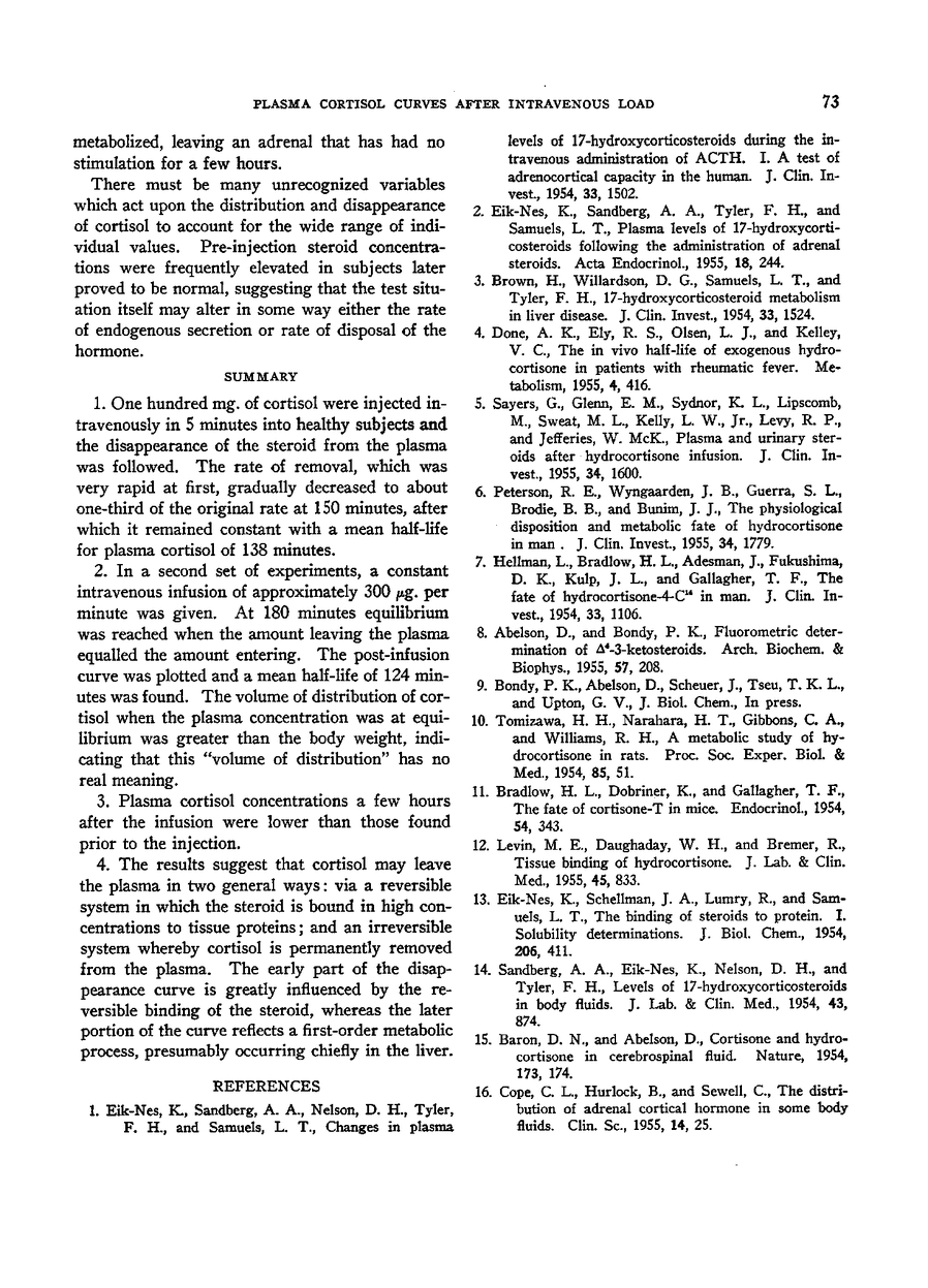 The Effect of Intravenous Cortisol Injections on the Plasma Cortisol Concentration in Man