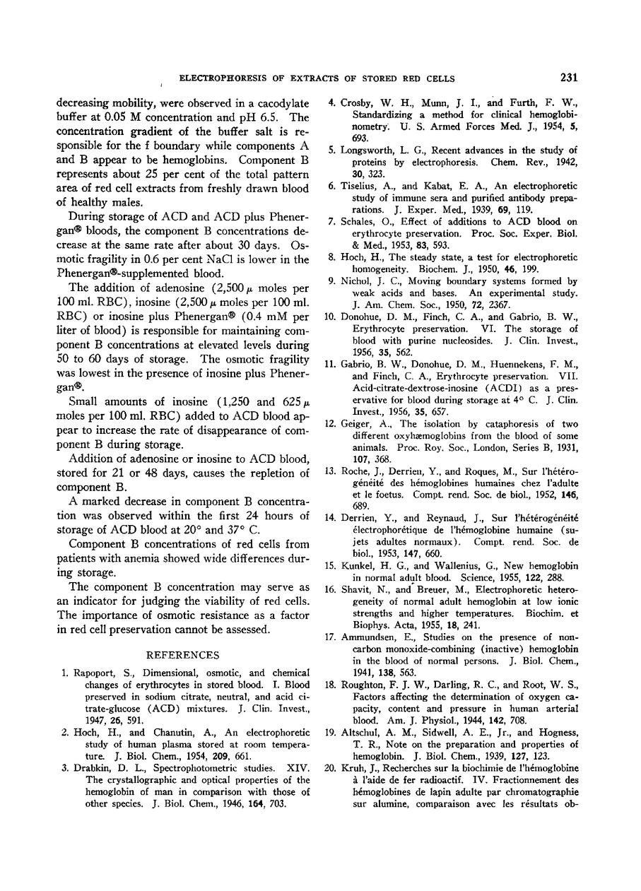 Electrophoretic Studies of Red Cell Extracts of Stored Blood