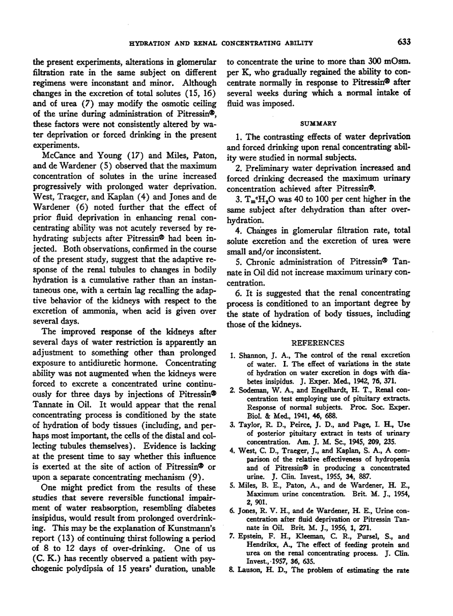 THE INFLUENCE OF BODILY HYDRATION ON THE RENAL CONCENTRATING PROCESS