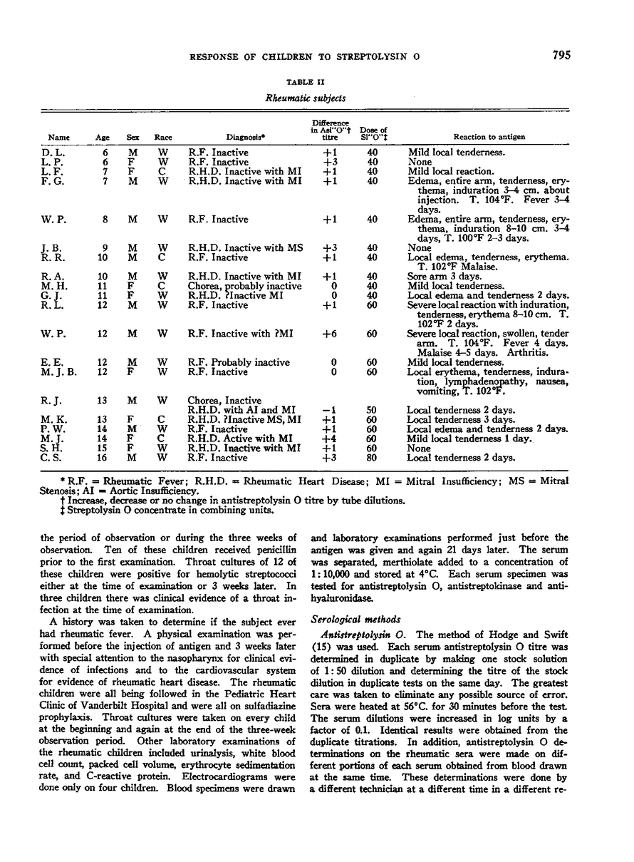 THE RESPONSE OF RHEUMATIC AND NON-RHEUMATIC CHILDREN TO STREPTOLYSIN O CONCENTRATE