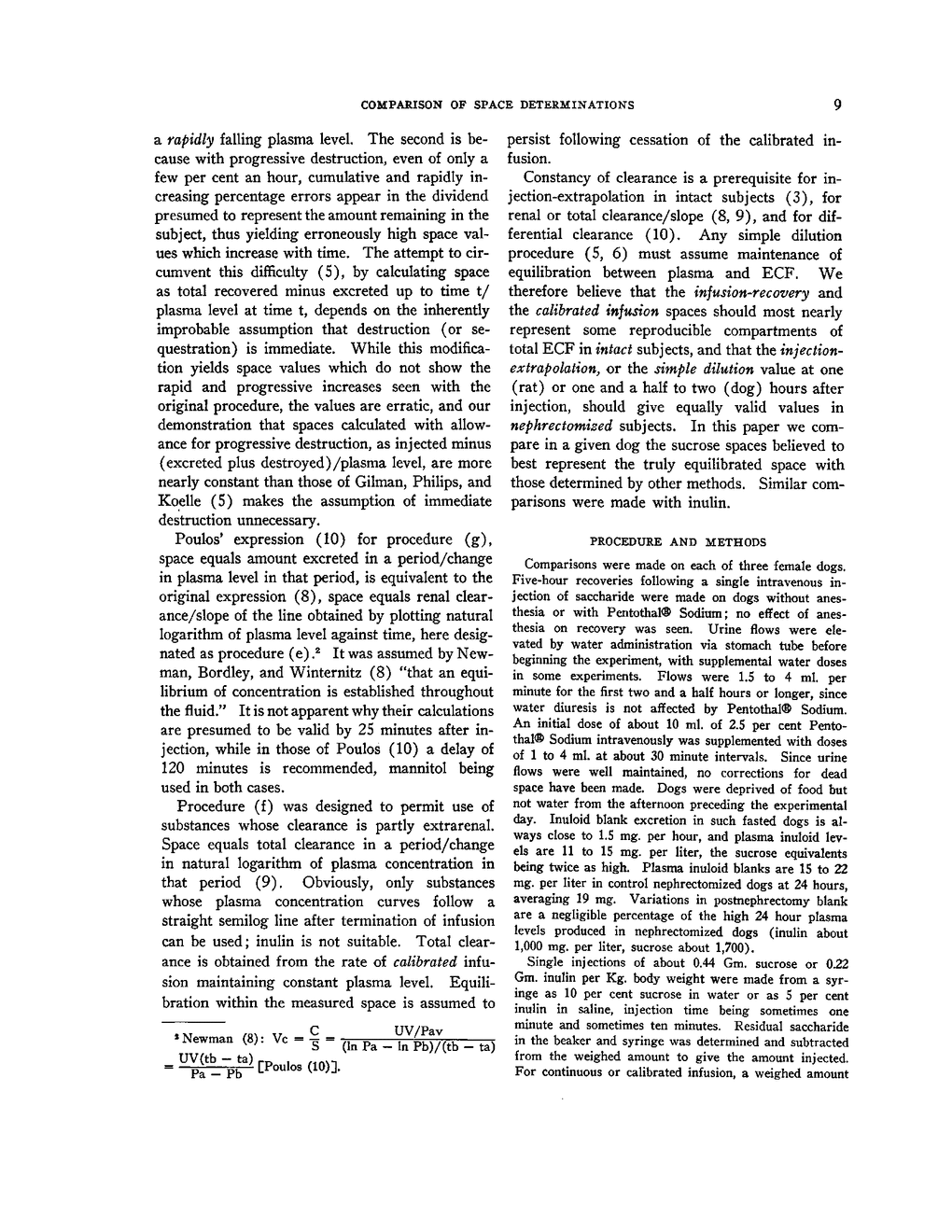 COMPARISON OF VARIOUS PROCEDURES FOR DETERMINING SUCROSE AND INULIN SPACE IN THE DOG