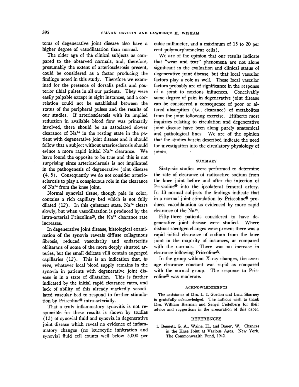 FROM THE NORMAL AND OSTEO-ARTHRITIC KNEE JOINT AND THE RESPONSE TO INTRA-ARTERIAL PRISCOLINE®