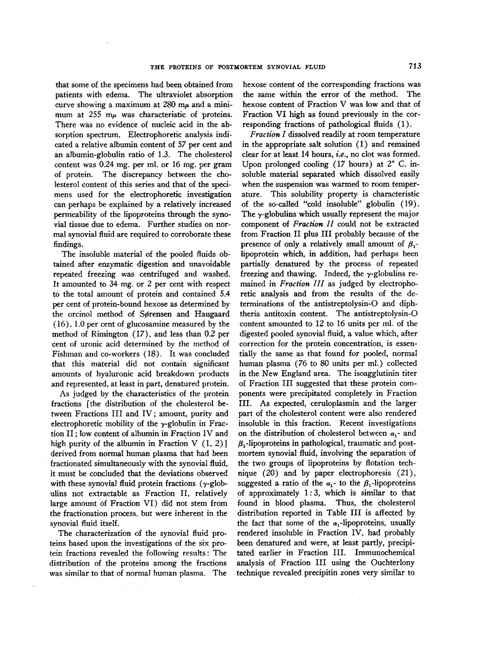 CHARACTERIZATION OF THE PROTEINS OF CERTAIN POSTMORTEM HUMAN SYNOVIAL FLUIDS