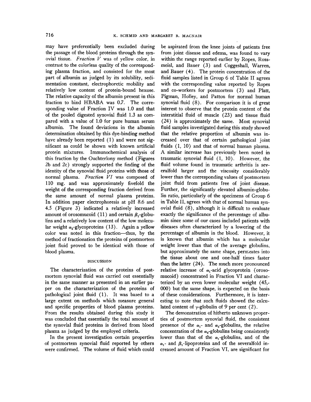 CHARACTERIZATION OF THE PROTEINS OF CERTAIN POSTMORTEM HUMAN SYNOVIAL FLUIDS
