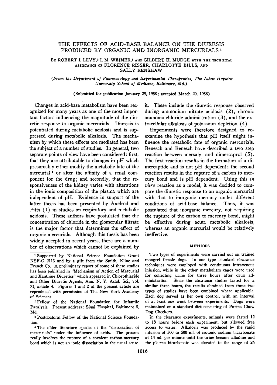 Robert I. Levy, I. M. Weiner, Gilbert H. Mudge
