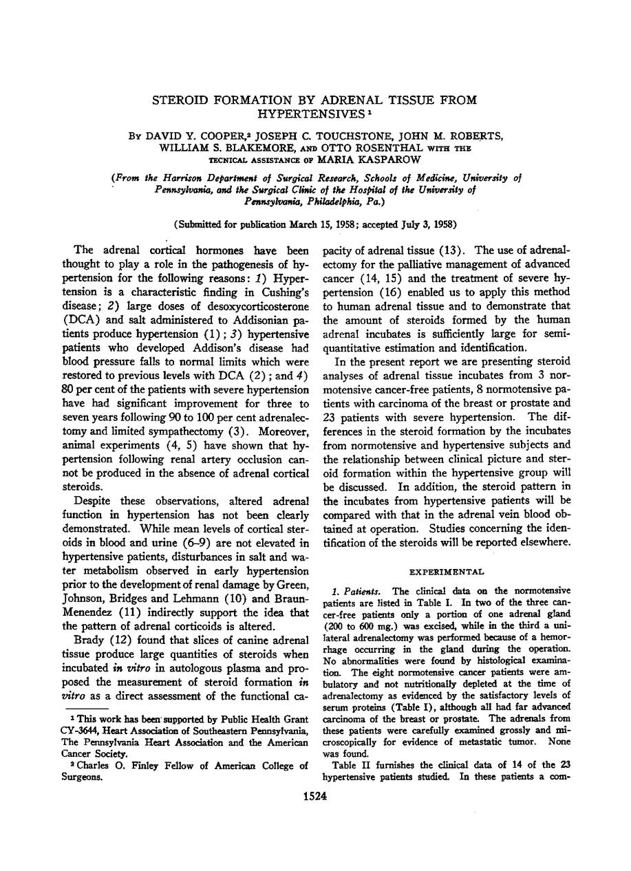 Steroid Formation by Adrenal Tissue from Hypertensives