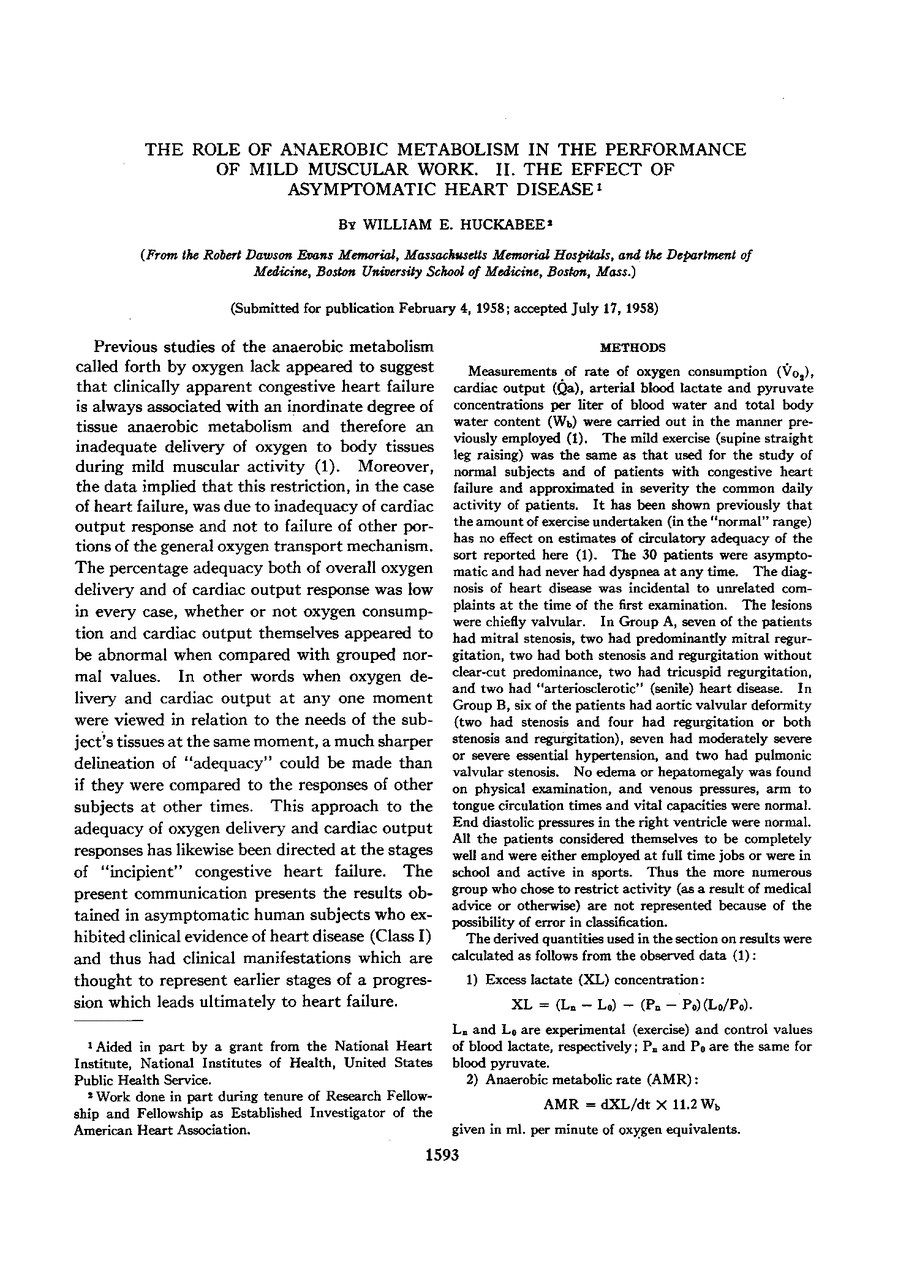 The Role of Anaerobic Metabolism in the Performance of Mild Muscular Work. II. The Effect of Asymptomatic Heart Disease