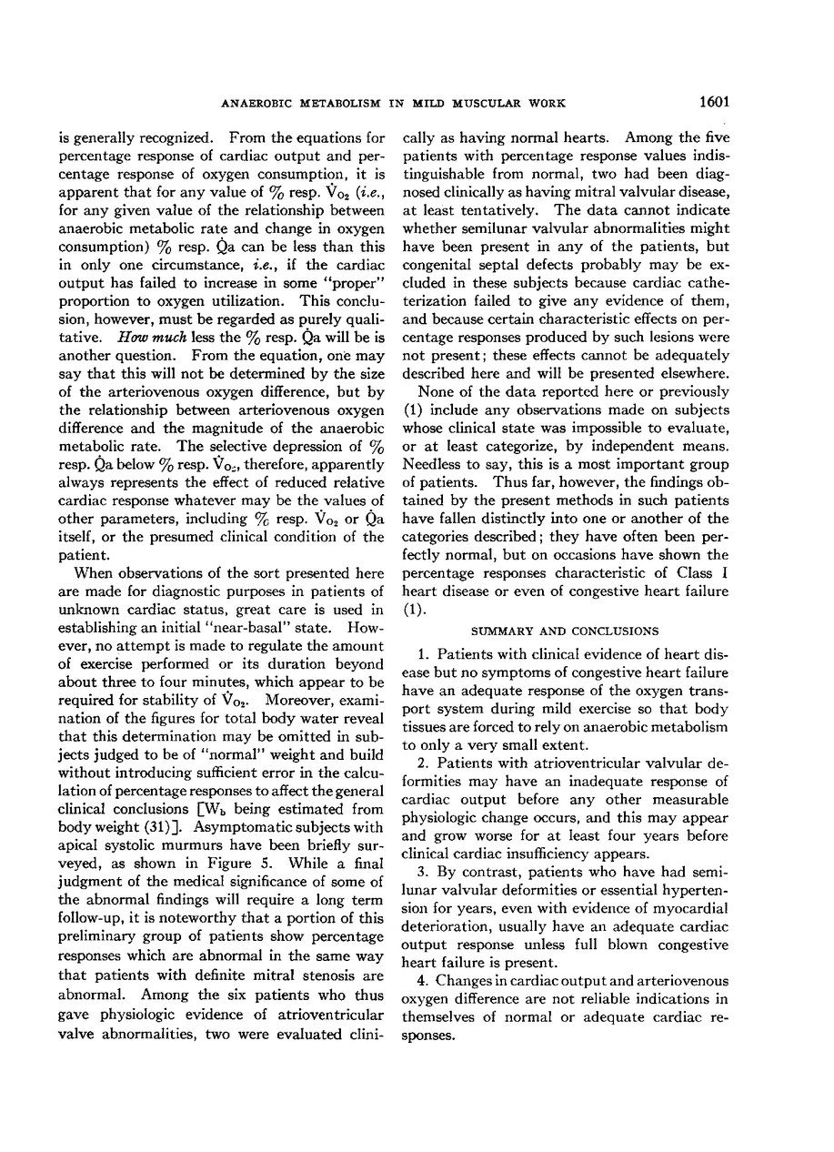 The Role of Anaerobic Metabolism in the Performance of Mild Muscular Work. II. The Effect of Asymptomatic Heart Disease