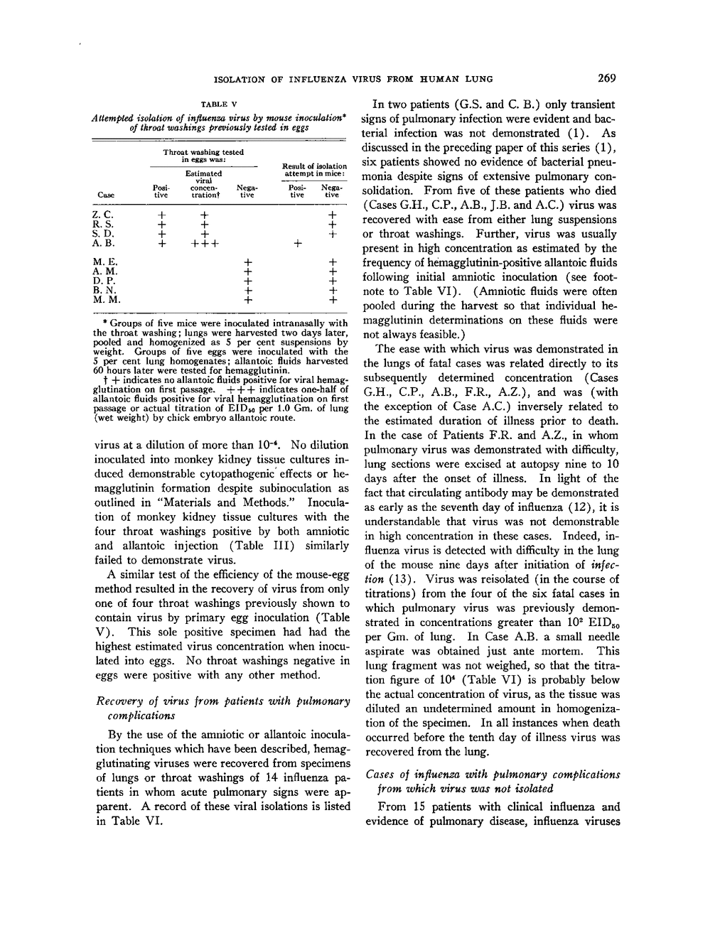 STUDIES ON INFLUENZA IN THE PANDEMIC OF 1957-1958. III. ISOLATION OF INFLUENZA A (ASIAN STRAIN) VIRUSES FROM INFLUENZA PATIENTS WITH PULMONARY COMPLICATIONS. DETAILS OF VIRUS ISOLATION AND CHARACTERIZATION OF ISOLATES, WITH QUANTITATIVE COMPARISON OF ISOLATION METHODS