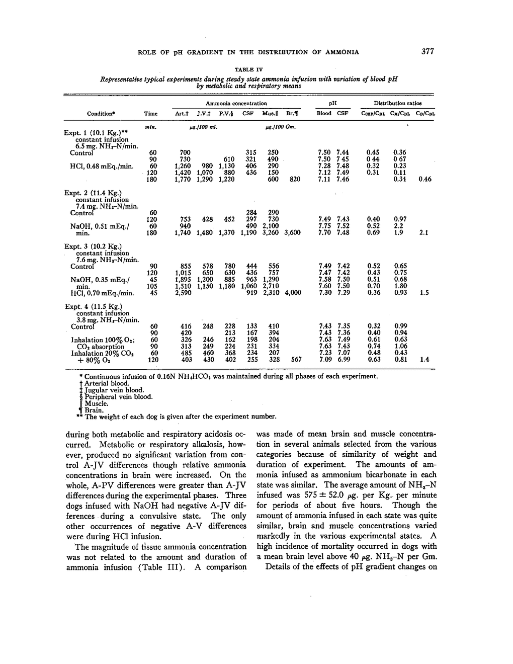 THE ROLE OF pH GRADIENT IN THE DISTRIBUTION OF AMMONIA BETWEEN BLOOD AND CEREBROSPINAL FLUID, BRAIN AND MUSCLE