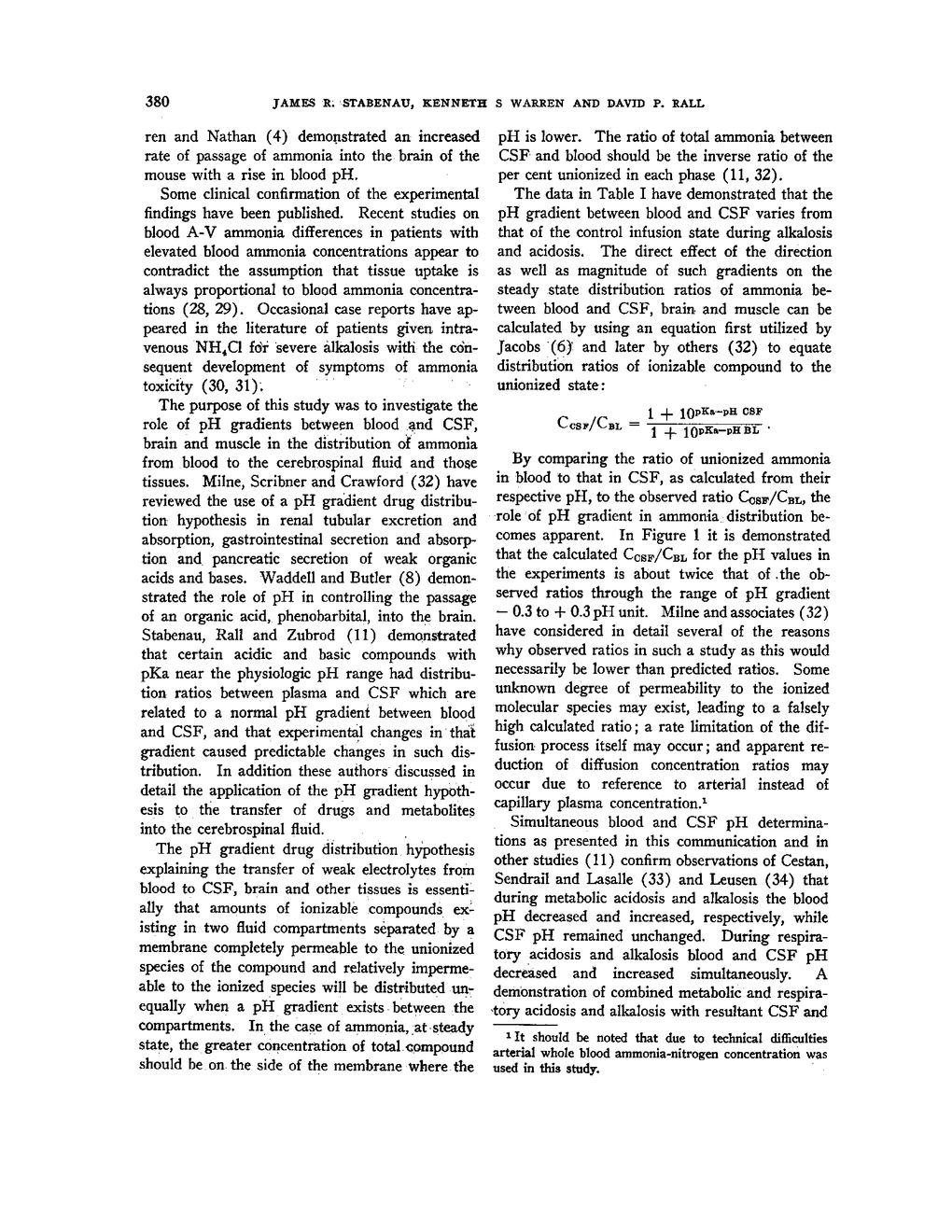 THE ROLE OF pH GRADIENT IN THE DISTRIBUTION OF AMMONIA BETWEEN BLOOD AND CEREBROSPINAL FLUID, BRAIN AND MUSCLE