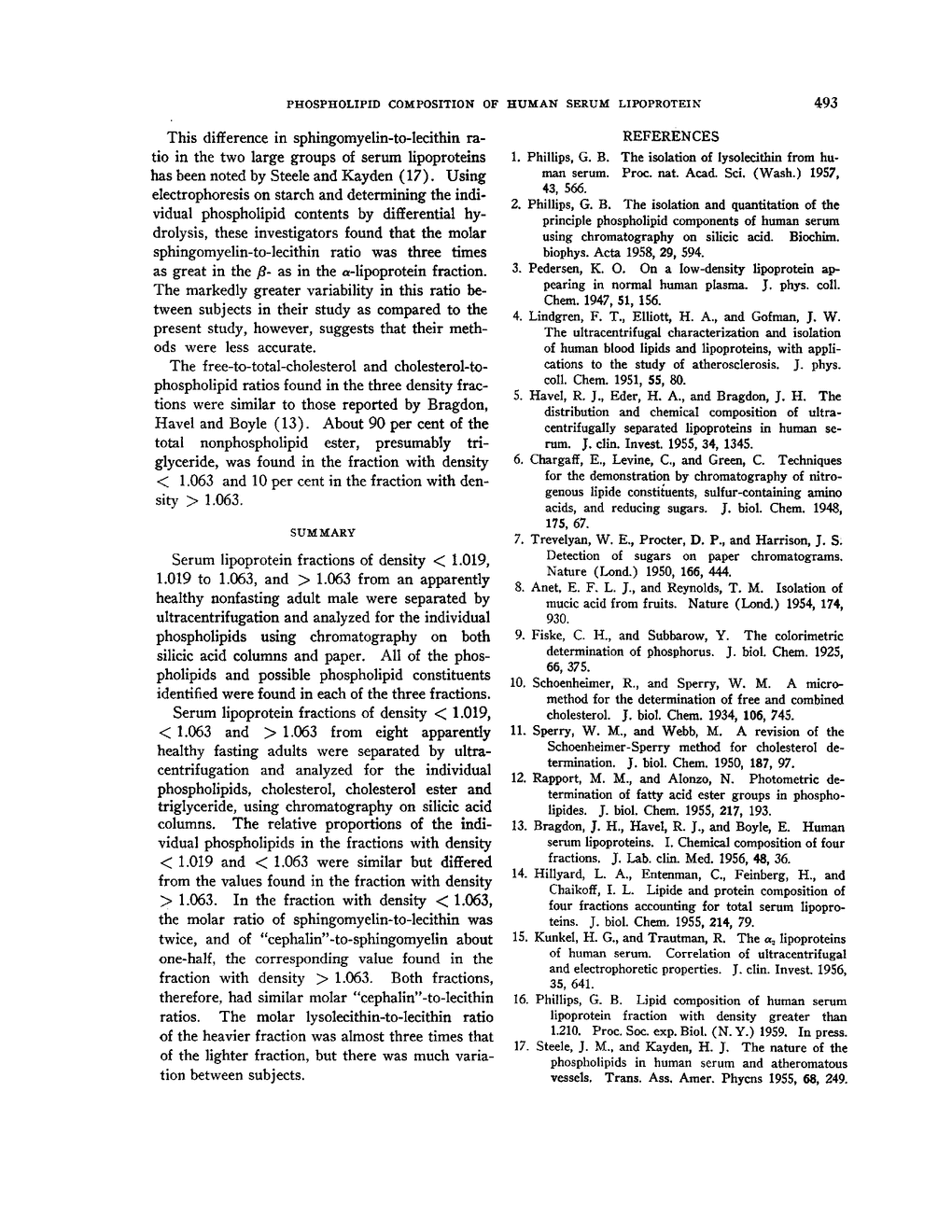 THE PHOSPHOLIPID COMPOSITION OF HUMAN SERUM LIPOPROTEIN FRACTIONS SEPARATED BY ULTRACENTRIFUGATION