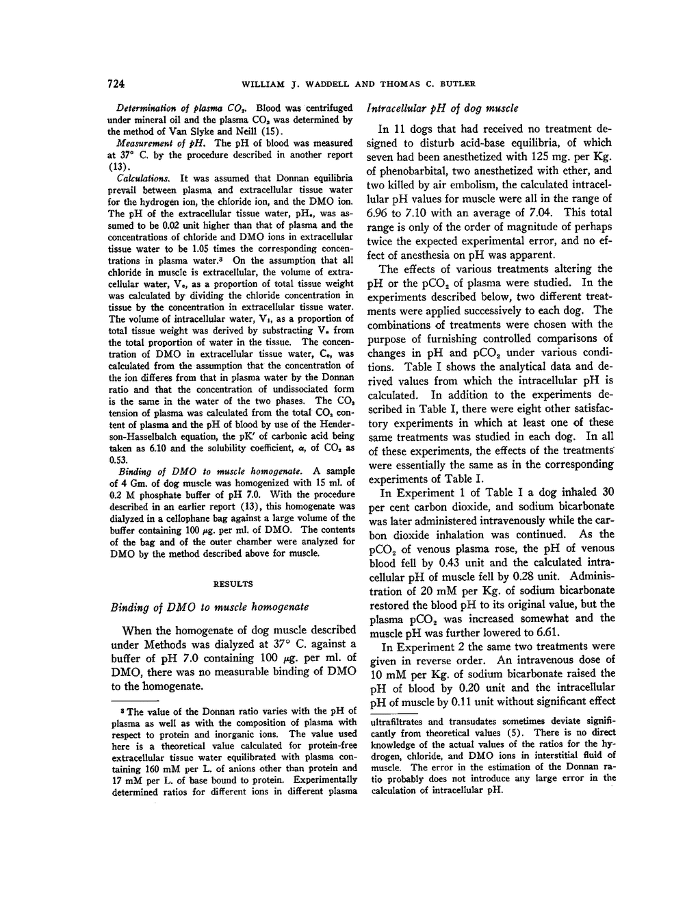 CALCULATION OF INTRACELLULAR pH FROM THE DISTRIBUTION OF 5,5-DIMETHYL-2,4-OXAZOLIDINEDIONE (DMO). APPLICATION TO SKELETAL MUSCLE OF THE DOG