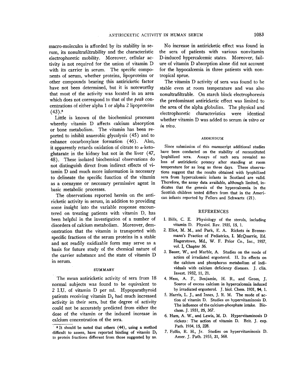 STUDIES OF ANTIRICKETIC ACTIVITY IN SERA FROM PATIENTS WITH DISORDERS OF CALCIUM METABOLISM AND PRELIMINARY OBSERVATIONS ON THE MODE OF TRANSPORT OF VITAMIN D IN HUMAN SERUM