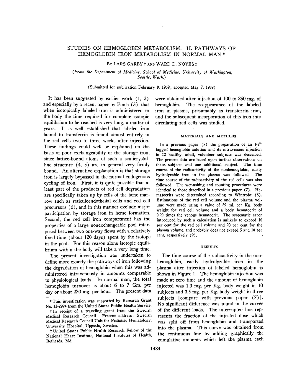 STUDIES ON HEMOGLOBIN METABOLISM. II. PATHWAYS OF HEMOGLOBIN IRON METABOLISM IN NORMAL MAN