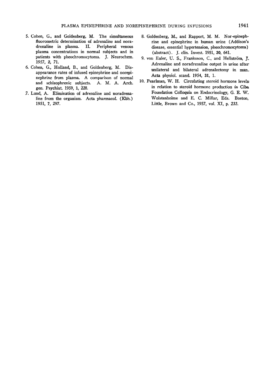 PLASMA CONCENTRATIONS OF EPINEPHRINE AND NOREPINEPHRINE DURING INTRAVENOUS INFUSIONS IN MAN