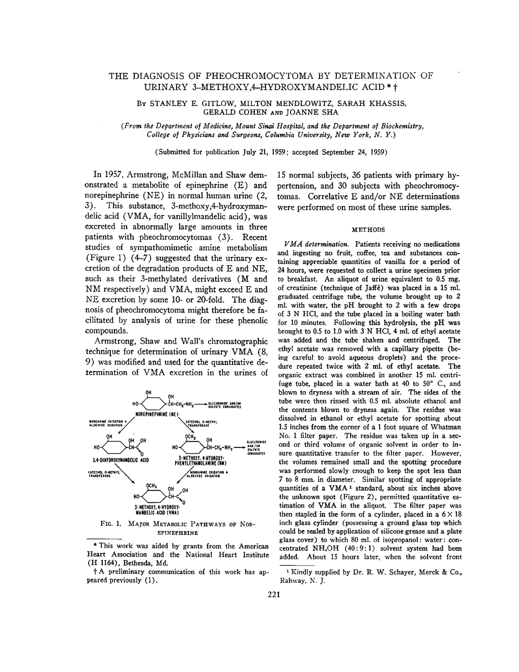THE DIAGNOSIS OF PHEOCHROMOCYTOMA BY DETERMINATION OF URINARY 3-METHOXY,4-HYDROXYMANDELIC ACID