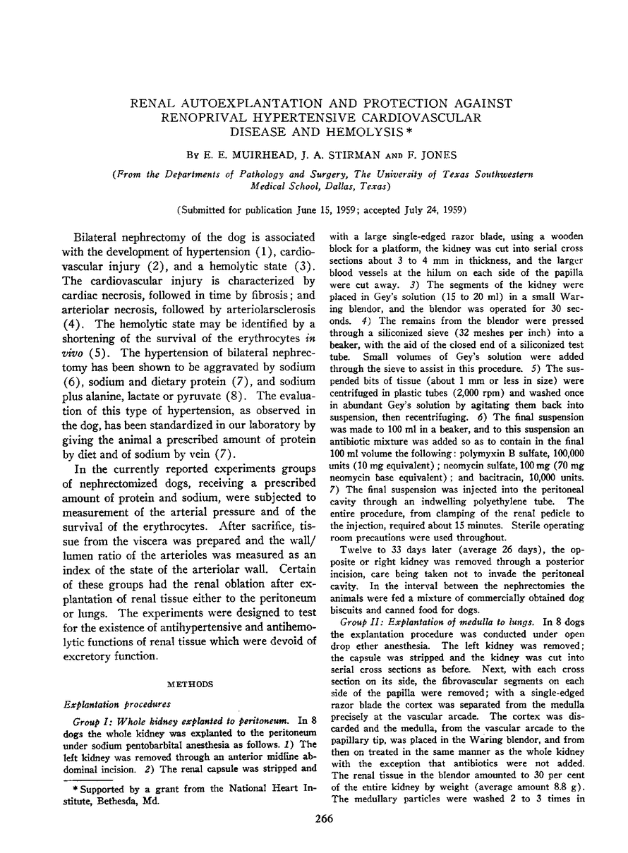 E. E. Muirhead, J. A. Stirman, F. Jones