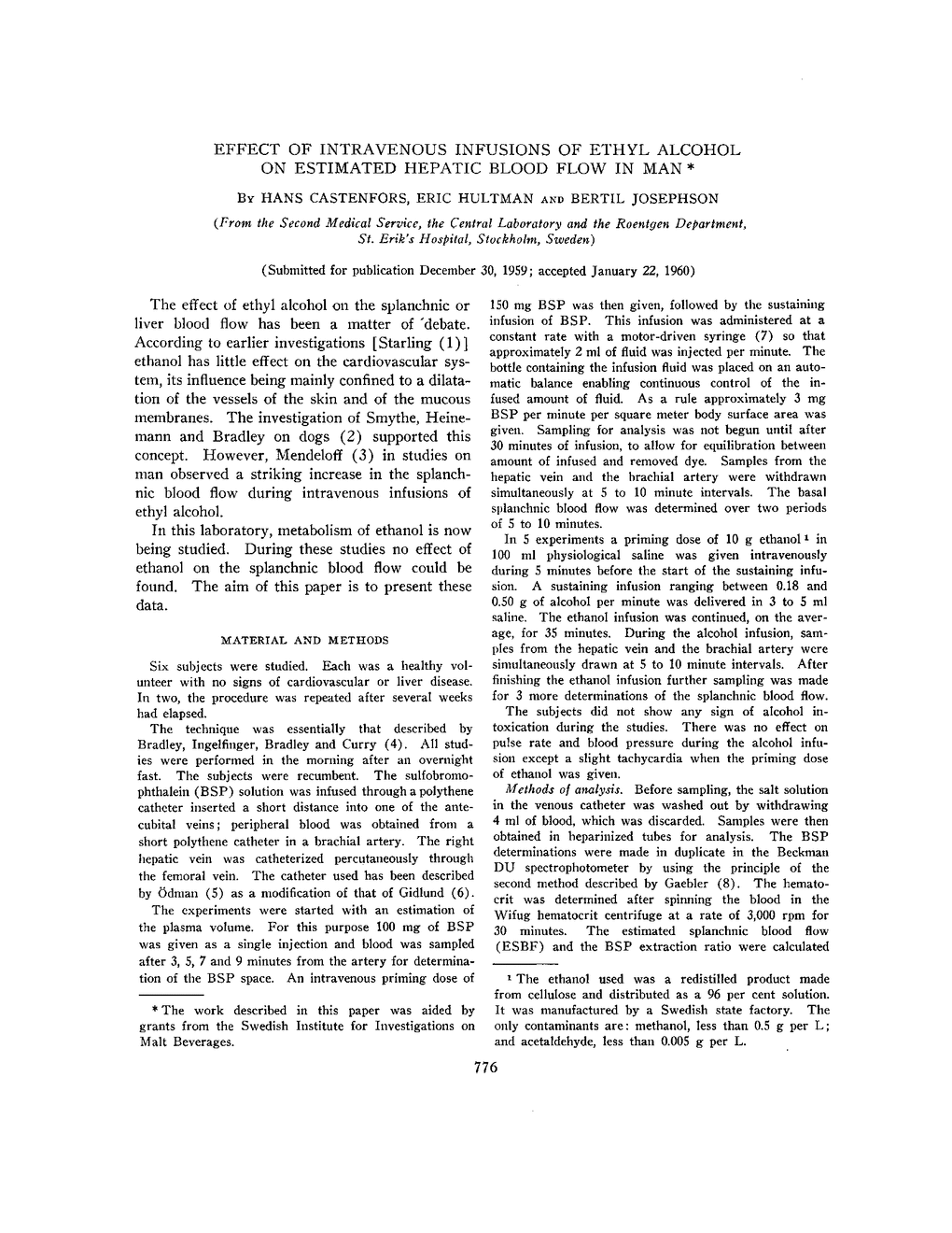 EFFECT OF INTRAVENOUS INFUSIONS OF ETHYL ALCOHOL ON ESTIMATED HEPATIC BLOOD FLOW IN MAN