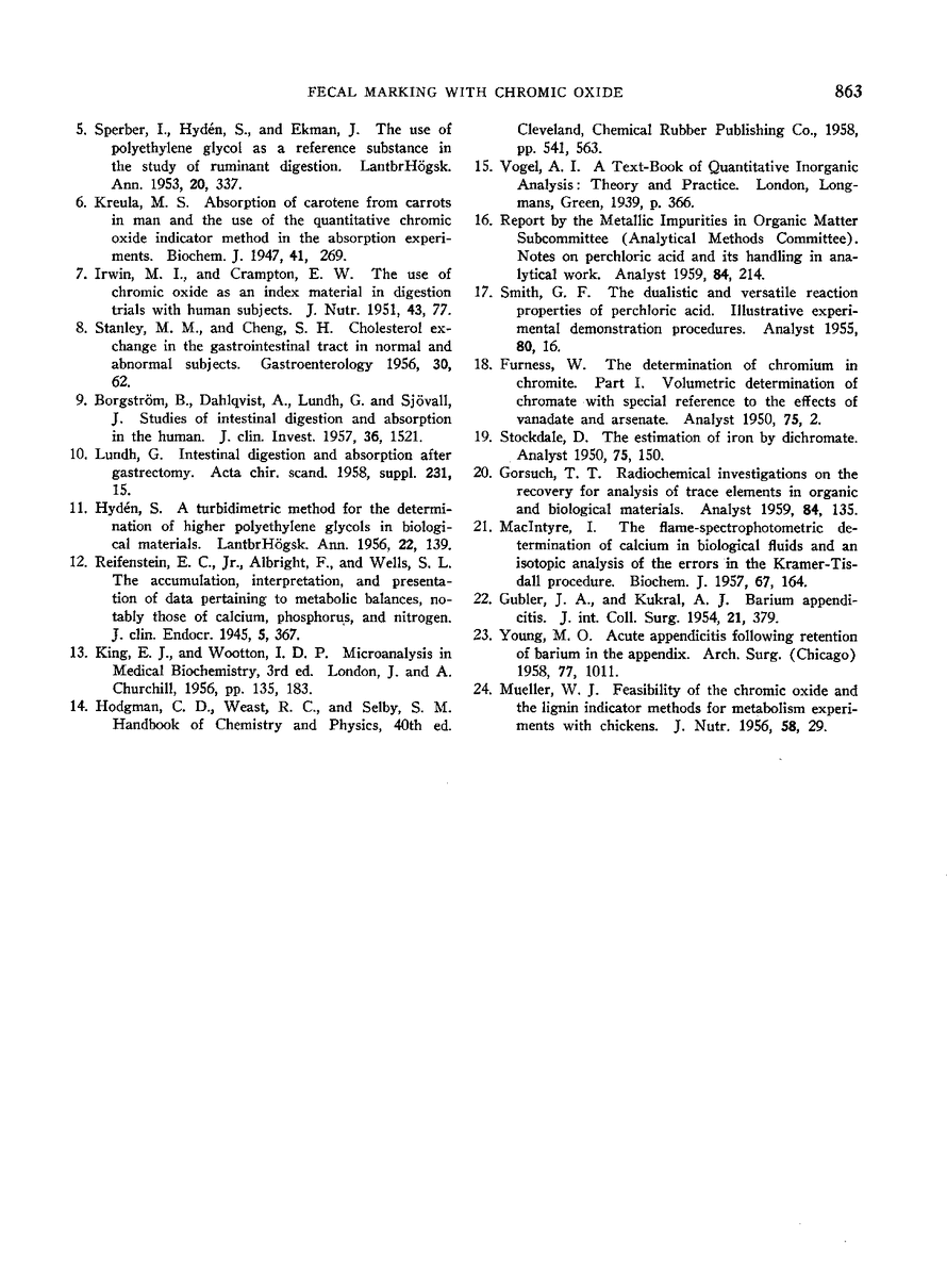EXPERIENCE WITH THE CHROMIC OXIDE METHOD OF FECAL MARKING IN METABOLIC BALANCE INVESTIGATIONS ON HUMANS