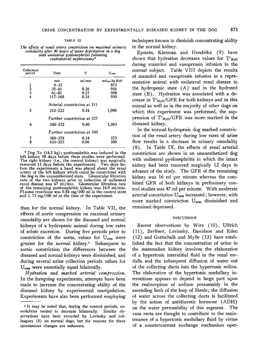 THE INFLUENCE OF GLOMERULAR FILTRATION RATE, SOLUTE EXCRETION AND HYDRATION ON THE CONCENTRATING MECHANISM OF THE EXPERIMENTALLY DISEASED KIDNEY IN THE DOG